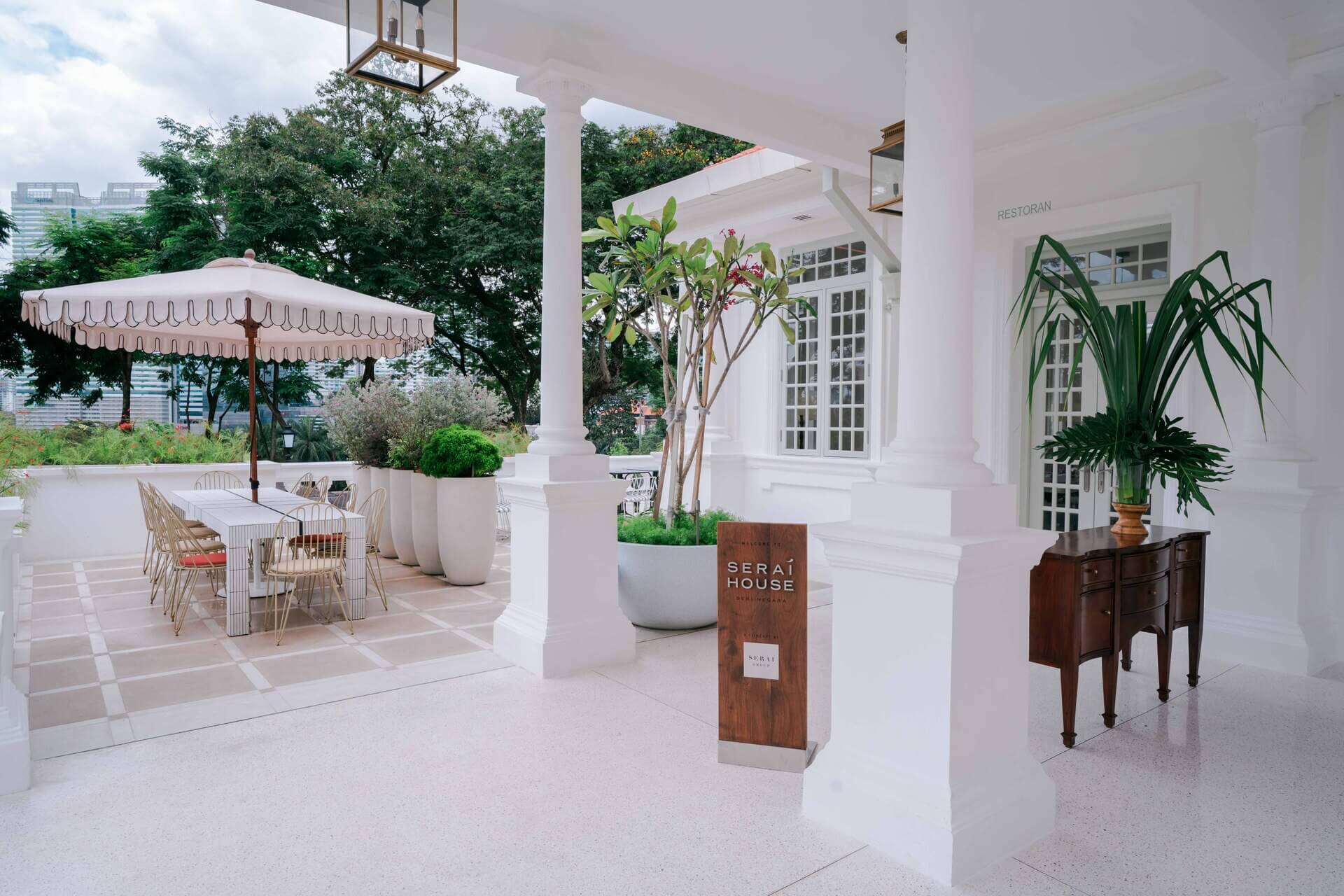Beneath lofty ceilings and framed by century-old trees, Serai House embraces a Colonial Contemporary aesthetic. The grandeur of the past is preserved, while thoughtful details introduce warmth and sophistication for the guests. Natural light, curated textures and generous proportions invite unhurried moments, where conversation flows as easily as the evening unfolds.